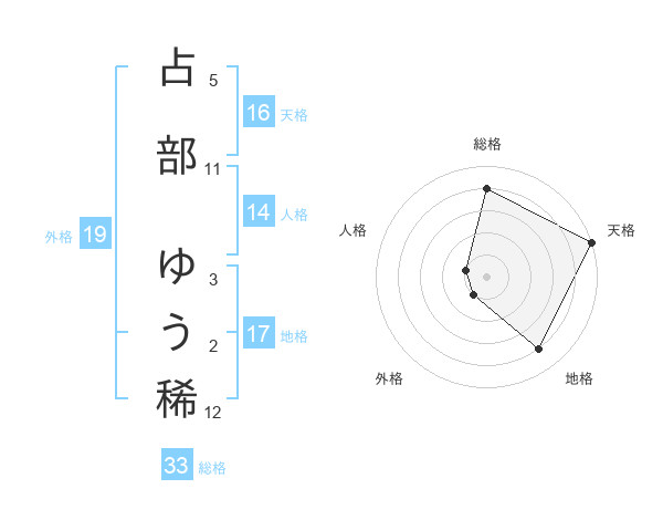 占部 ゆう稀さんを姓名の画数から五運を鑑定