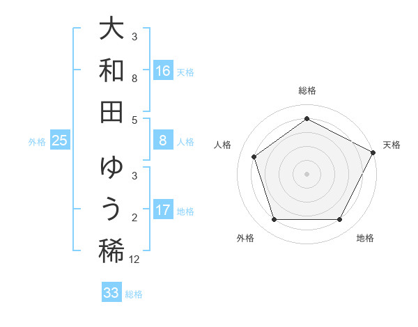 大和田 ゆう稀さんを姓名の画数から五運を鑑定
