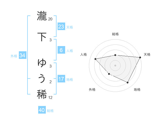瀧下 ゆう稀さんの天格は23画の5点!
