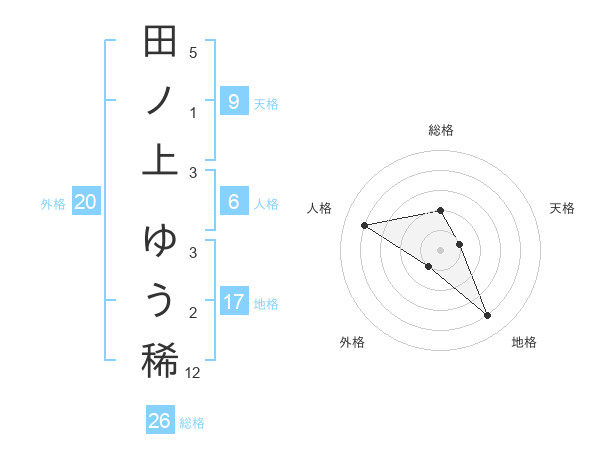田ノ上 ゆう稀さんの総格は26画の2点!