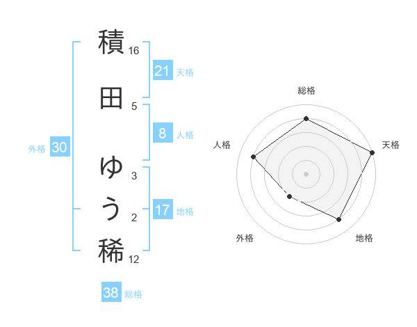 積田 ゆう稀さんを姓名の画数から五運を鑑定