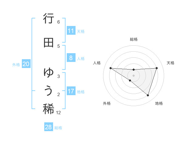 行田 ゆう稀さんを姓名の画数から五運を鑑定