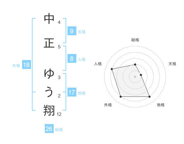 中正 ゆう翔さんを姓名の画数から五運を鑑定