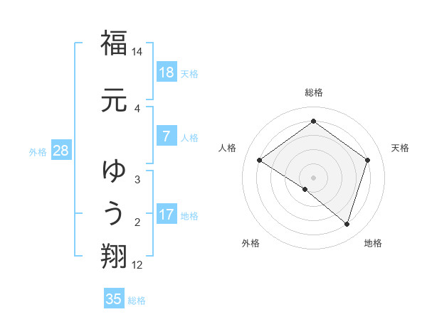 福元 ゆう翔さんの天格は18画の4点!