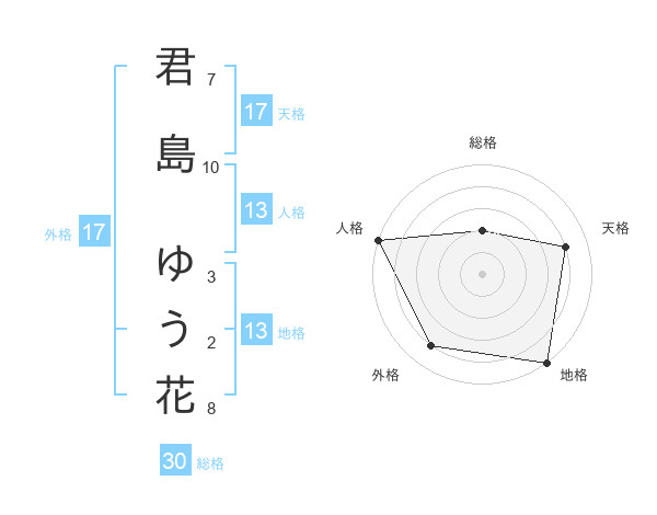 君島 ゆう花さんを姓名の画数から五運を鑑定
