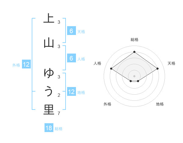 上山 ゆう里さんを姓名の画数から五運を鑑定