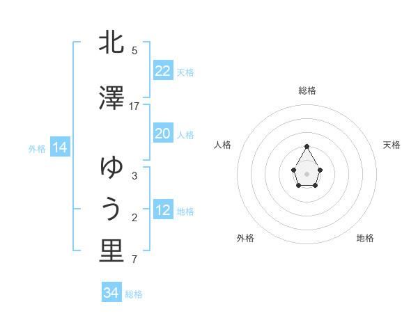 北澤 ゆう里さんを姓名の画数から五運を鑑定