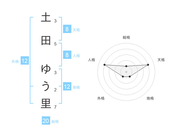 土田 ゆう里さんを姓名の画数から五運を鑑定