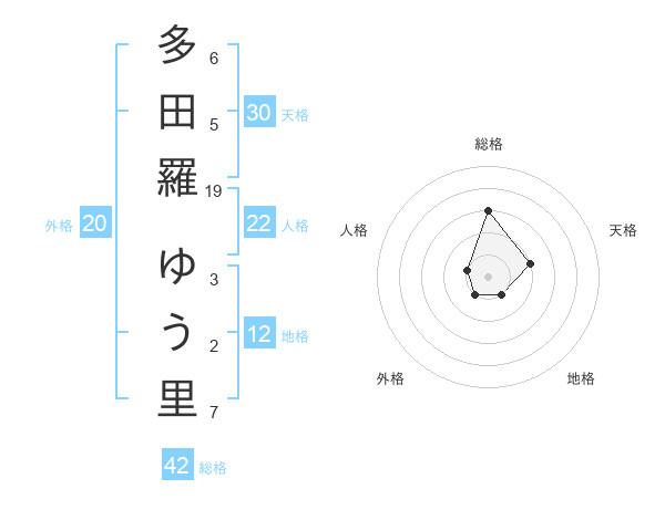 多田羅 ゆう里さんを姓名の画数から五運を鑑定