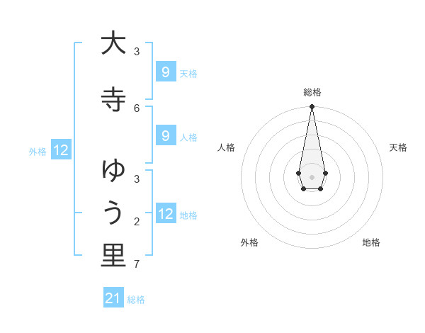 大寺 ゆう里さんを姓名の画数から五運を鑑定