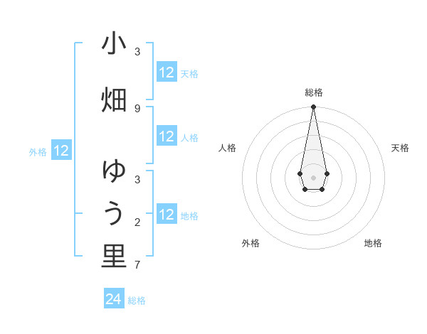 小畑 ゆう里さんの天格は12画の1点!