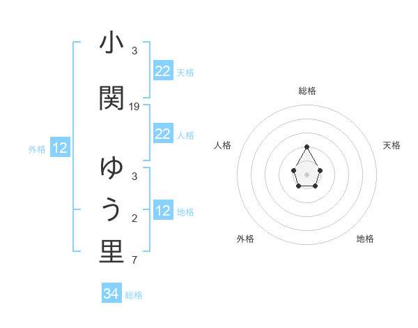 小関 ゆう里さんを姓名の画数から五運を鑑定