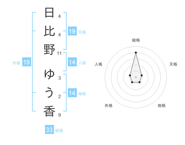 日比野 ゆう香さんを姓名の画数から五運を鑑定