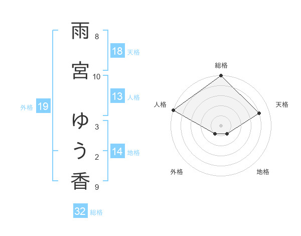 雨宮 ゆう香さんを姓名の画数から五運を鑑定