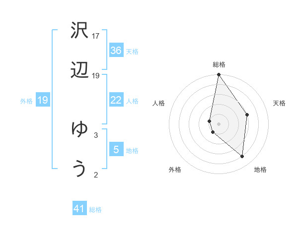 沢辺 ゆうさんを姓名の画数から五運を鑑定