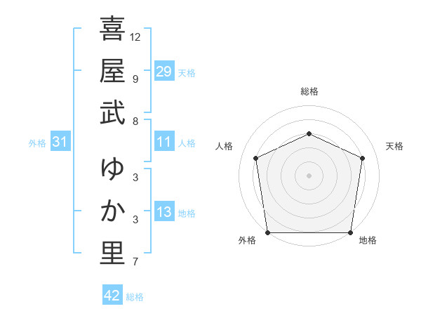 喜屋武 ゆか里さんを姓名の画数から五運を鑑定