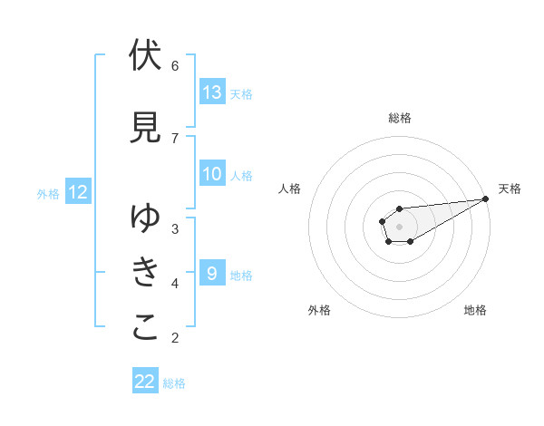 伏見 ゆきこさんを姓名の画数から五運を鑑定
