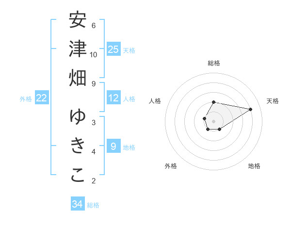 安津畑 ゆきこさんを姓名の画数から五運を鑑定
