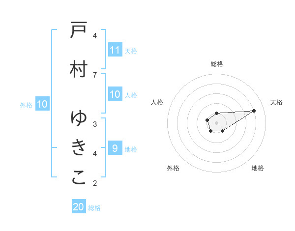 戸村 ゆきこさんの天格は11画の4点!