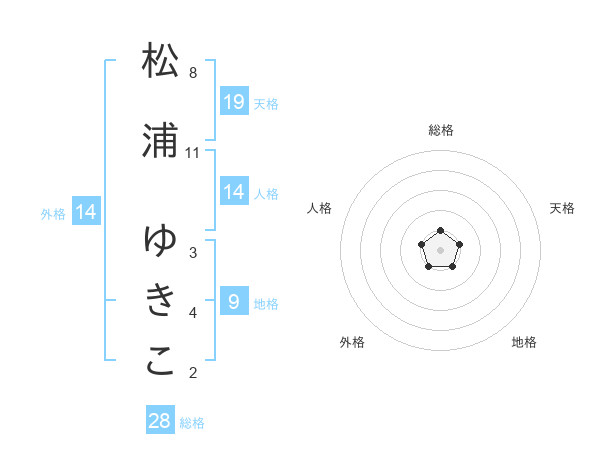 松浦 ゆきこさんを姓名の画数から五運を鑑定