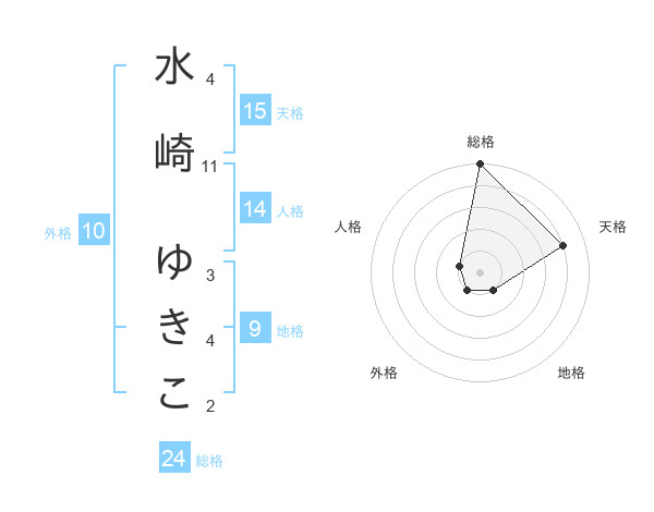 水崎 ゆきこさんを姓名の画数から五運を鑑定