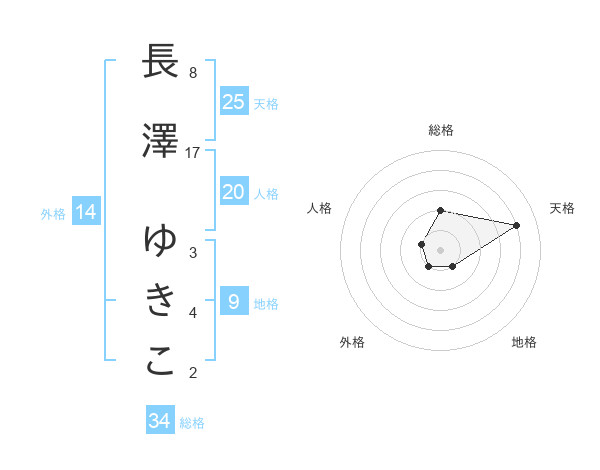 長澤 ゆきこさんを姓名の画数から五運を鑑定