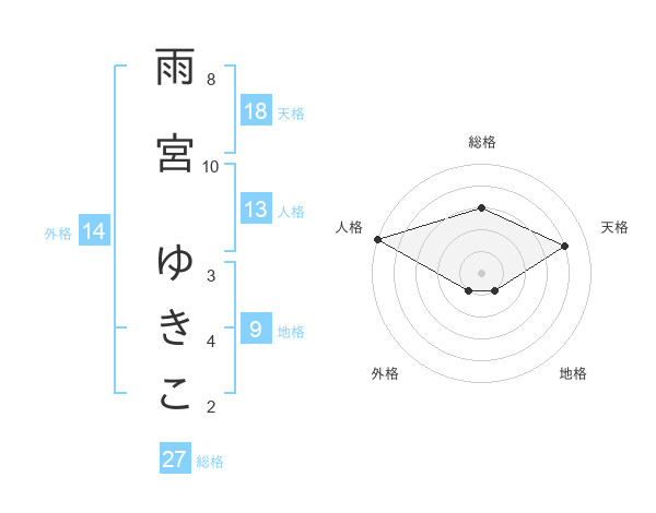 雨宮 ゆきこさんを姓名の画数から五運を鑑定