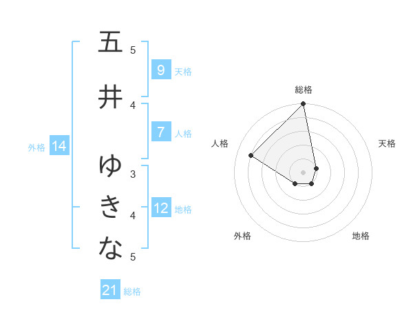 五井 ゆきなさんを姓名の画数から五運を鑑定