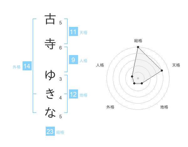古寺 ゆきなさんの総格は23画の5点!