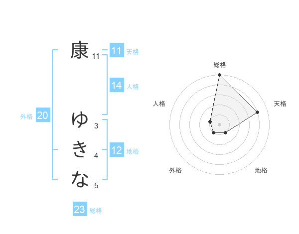 康 ゆきなさんを姓名の画数から五運を鑑定