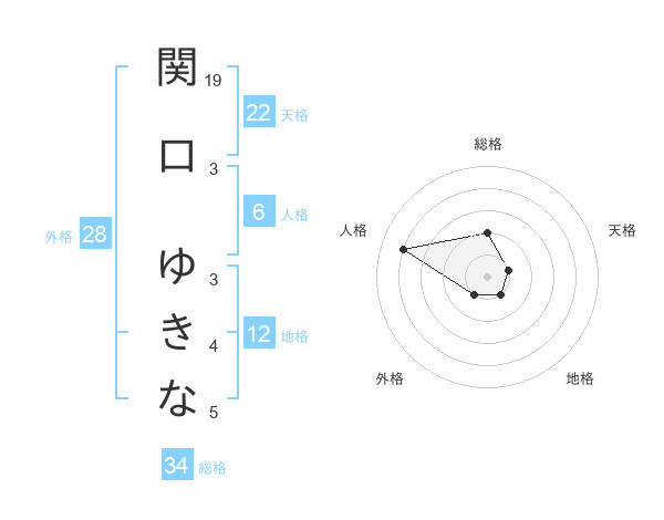 関口 ゆきなさんの総格は34画の2点!