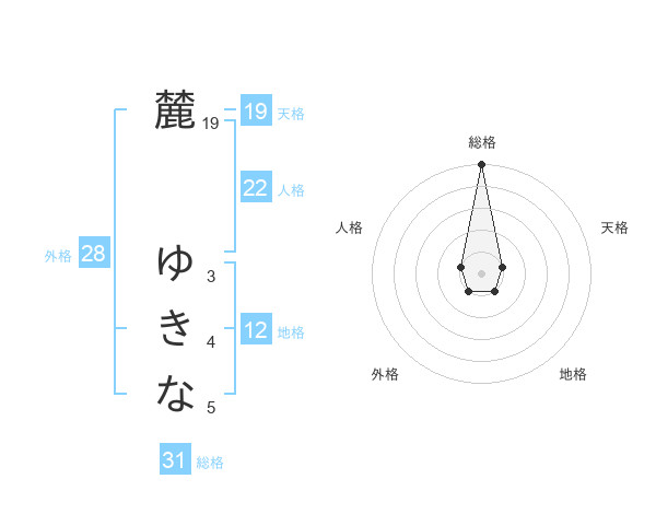 麓 ゆきなさんを姓名の画数から五運を鑑定
