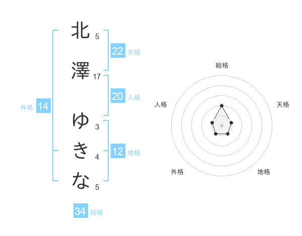 北澤 ゆきなさんを姓名の画数から五運を鑑定
