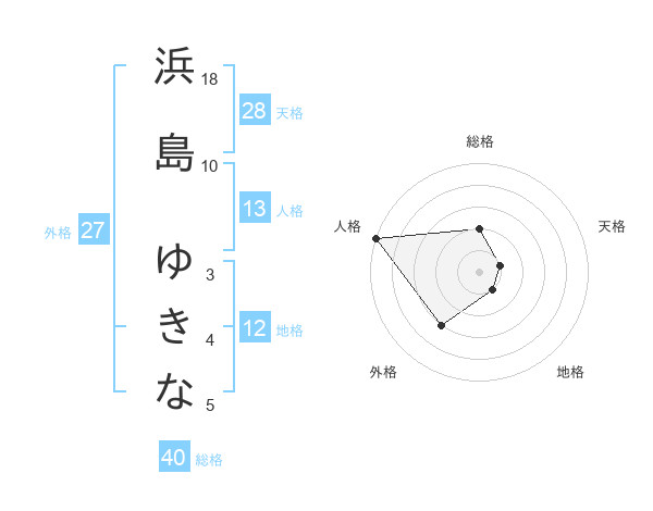 浜島 ゆきなさんの総格は40画の2点