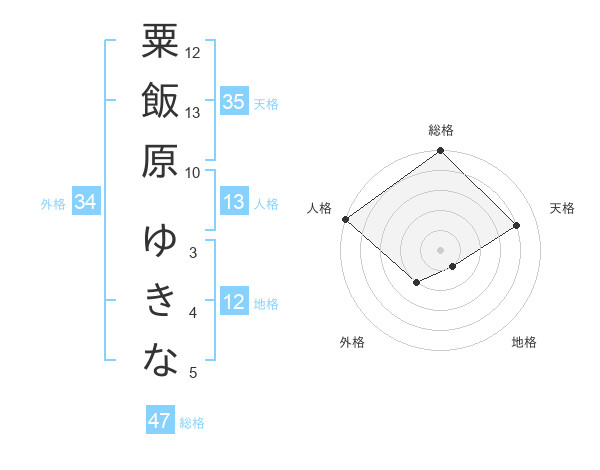 粟飯原 ゆきなさんを姓名の画数から五運を鑑定
