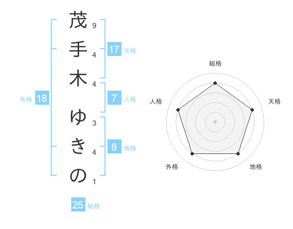 茂手木 ゆきのさんの総格は25画の4点!
