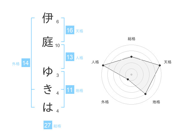 伊庭 ゆきはさんを姓名の画数から五運を鑑定