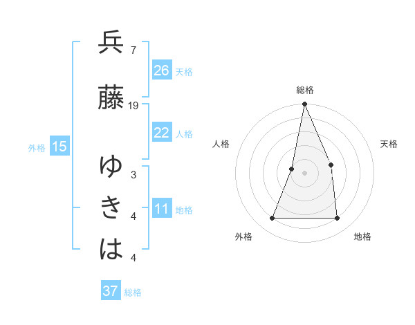 兵藤 ゆきはさんの総格は37画の5点!