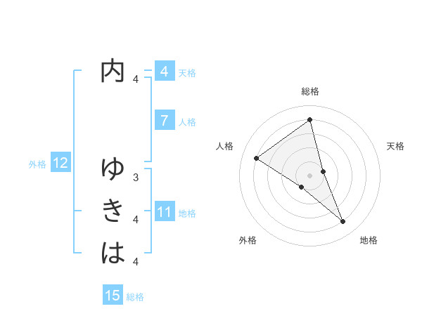 内 ゆきはさんの総格は15画の4点!