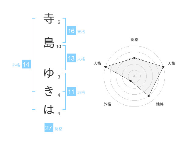 寺島 ゆきはさんの天格は16画の5点!