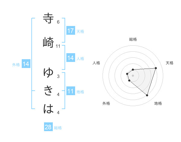 寺崎 ゆきはさんの天格は17画の4点!