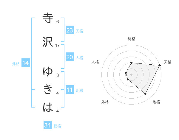 寺沢 ゆきはさんの天格は23画の5点!