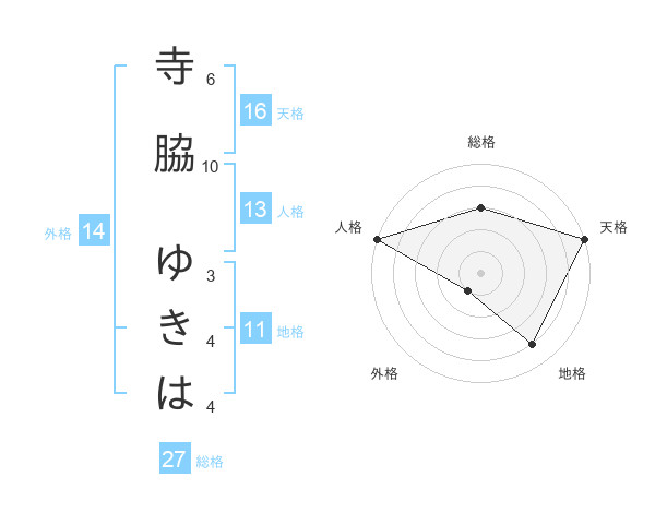 寺脇 ゆきはさんを姓名の画数から五運を鑑定