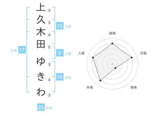 上久木田 ゆきわさんを姓名の画数から五運を鑑定