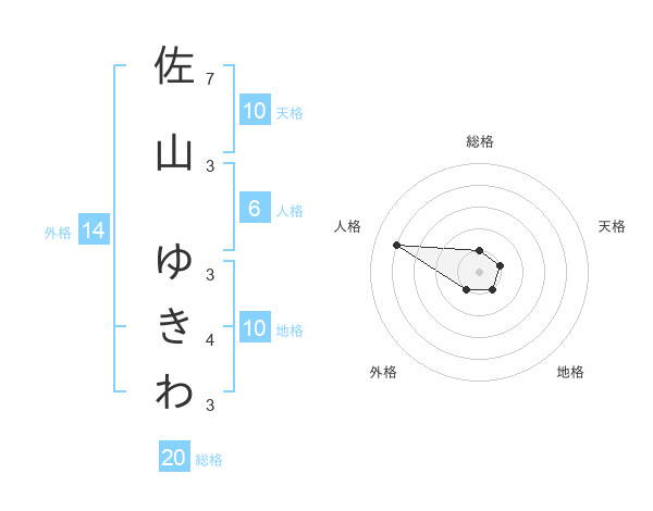 佐山 ゆきわさんを姓名の画数から五運を鑑定