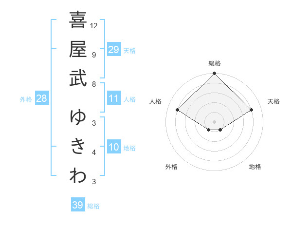 喜屋武 ゆきわさんを姓名の画数から五運を鑑定