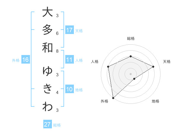 大多和 ゆきわさんを姓名の画数から五運を鑑定