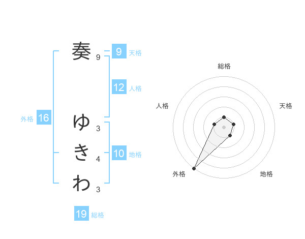 奏 ゆきわさんの外格は16画の5点!