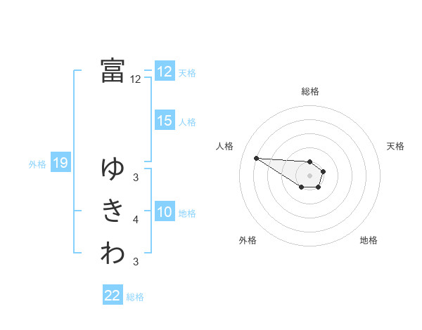 富 ゆきわさんの総格は22画の1点!