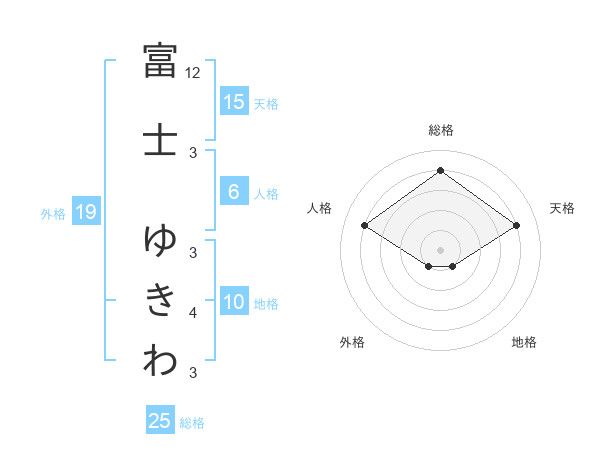 富士 ゆきわさんを姓名の画数から五運を鑑定